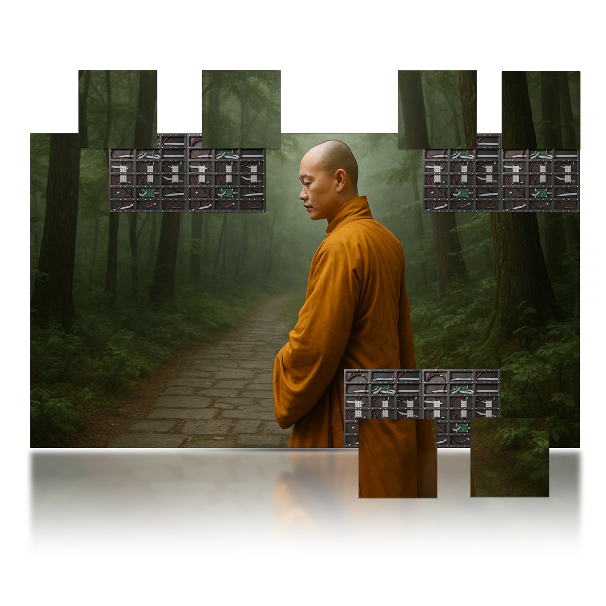 The 960×960×55 mm cabinet houses a 240×240 pixel array built with SMD 2020 LEDs on a 2‑layer, 1.6 mm PCB. ICN1065L drivers operate at a 1/16 scan rate to deliver a 3,840 Hz refresh frequency and 13‑bit gray‑scale depth, ensuring crisp video and text. Control is managed by the Nova A5s Plus receiving card, while dual Nandian NB200P55 power supplies support up to 360 W peak consumption through a direct‑power interface. Optically, it reaches 600 nits of brightness with a contrast ratio ≥ 5000 : 1 and a calibrated 12,000 K white point across a 160°×160° viewing angle. Structural rigidity and heat dissipation come from its full die‑cast aluminum front and iron back chassis—machined to ± 0.3 % tolerance for seamless tile alignment. Weighing 28 kg (62 lbs), front‑access magnetic modules allow rapid servicing while supporting fixed wall‑mount installations. An IP30 rating makes it ideal for permanent indoor applications.